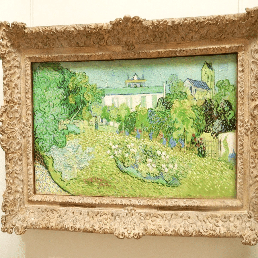 ゴッホが終焉の地・オーヴェルで描いた一枚。滞在先のラヴー旅館のすぐ近くにあった敬愛する画家シャルル=フランソワ・ドービニーの邸宅の庭。画面の中央奥にいるのは、未亡人。亡くなる6日前、弟テオへの手紙の中でもこの庭について語っており、この絵がゴッホの遺作かもしれないといわれている。
